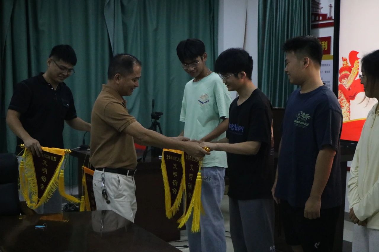 同时为了让文明修身工程更好的推进下去,买球官网于11月15日在9303举办表彰仪式。学院党总支书记王开强亲临现场对获得文明宿舍的同学颁发锦旗以做表彰。王开强表示奖项只是起点,希望获奖宿舍的同学继续保持优秀,同时希望本次评比活动能够激励其他同学继续努力!