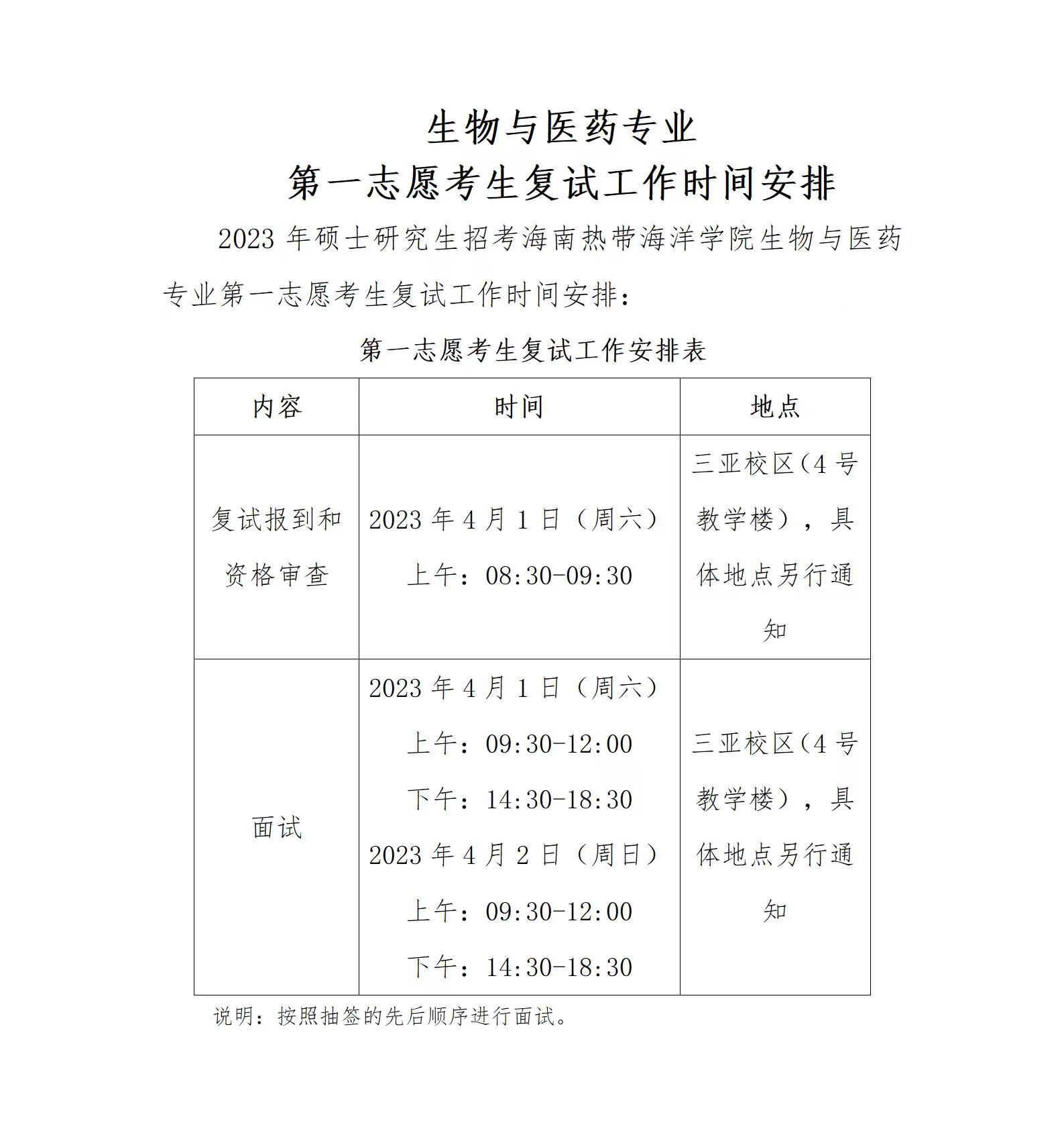 生物与医药专业第一志愿考生复试工作时间安排
